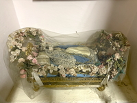 La Vergine dormiente Simulacro ligneo della metà del '700 circa, che riproduce l'iconografia della Vergine Maria adagiata su una lettiga. Il culto della "Madonna dormiente" è giunto in Sardegna dall'Oriente bizantino, quando l'isola era sotto il dominio di Costantinopoli, e celebra il "sonno" di Maria prima della sua ascensione, distinguendosi dalla tradizione latina dell'Assunzione.