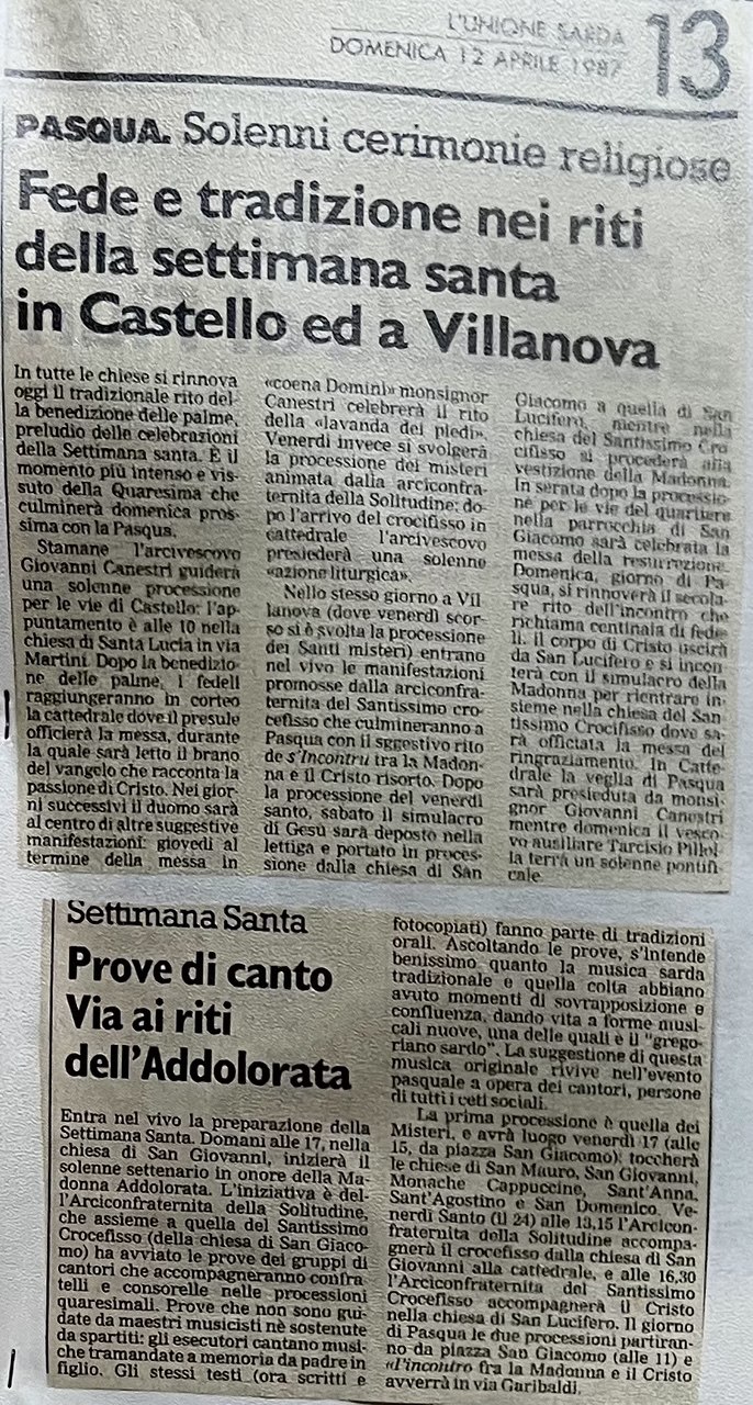 Prove di canto Via ai riti dell'Addolorata