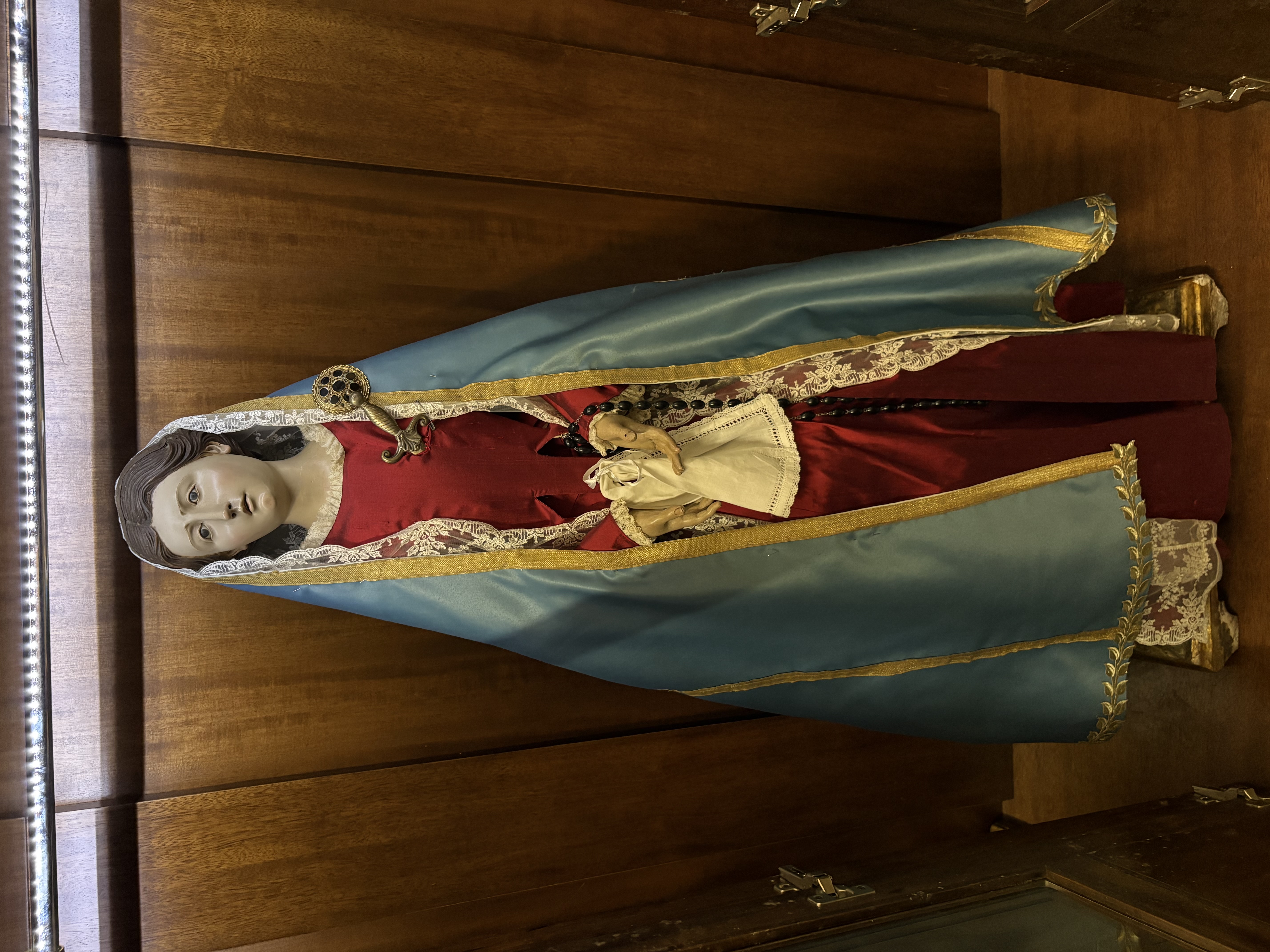 Legno intagliato, policromato e dorato, stoffa (struttura a manichino)