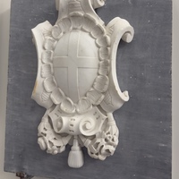 Stemma della chiesa originale dell'Arciconfraternita dei Genovesi. Era stata eretta dal 1599 in Via Manno, Cagliari, poi andata distrutta nel 1943 durante i bombardamenti della seconda guerra mondiale.