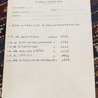 Foglio scritto dall'ex priore dell'Arciconfraternita dei Genovesi Mario Lastretti in cui elenca, cronologicamente, le date di erezione in arciconfraternite di tutte quelle presenti a Cagliari