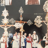 raffigurazione dell'arciconfraternita dei genovesi nella suddetta processione, con il crocifisso ora situato alla chiesa dei santi Giorgio e Caterina e due crocifissi genovesi